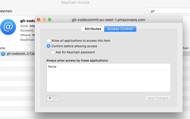 - Configure the Keychain Access utility to not provide credentials for AWS CodeCommit repositories.