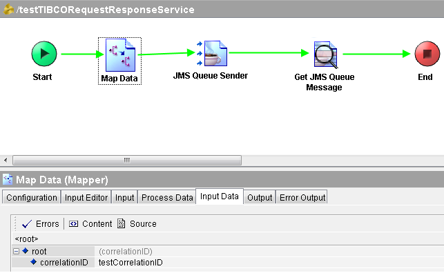 The only difference being that the ‘JMS Queue Sender’ activity does not output the CorrelationID. So we need to set up a common CorrelationID field we can use in both the ‘JMS Queue Sender’ and ‘Get JMS Queue Message’ activities. In the example below we use a Mapper activity for this.