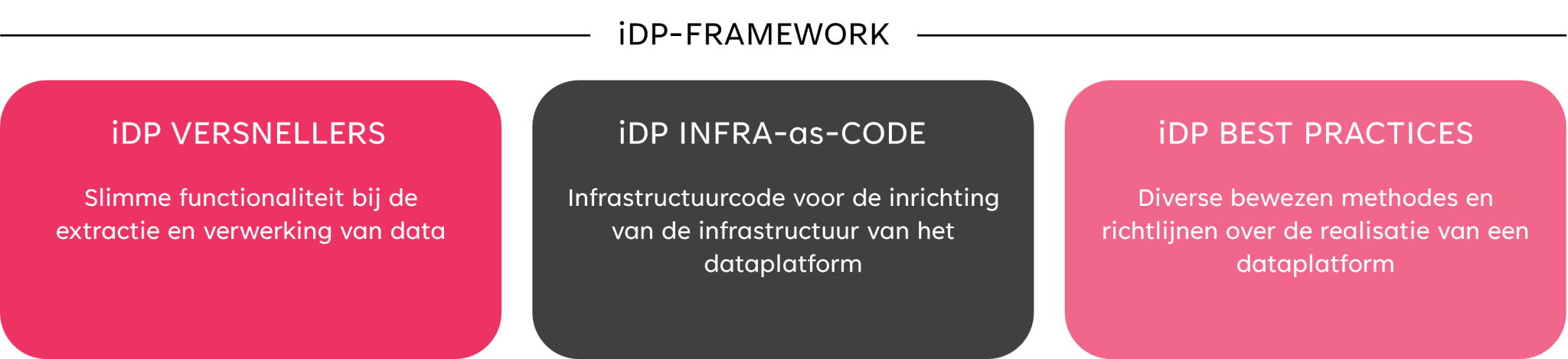 Waar veel organisaties maanden bezig zijn met de technische voorbereiding van hun dataplatform, denk aan het ontwerpen van een technische architectuur, het inrichten van een ontwikkelstraat en het selecteren van de juiste governanceprincipes, slaat iDP Fabric deze stappen niet over, maar versnelt ze aanzienlijk.
